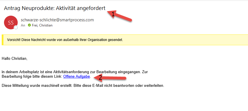 Alternativ kann die Aufgabe auch über den Link in der Info Mail geöffnet werden.