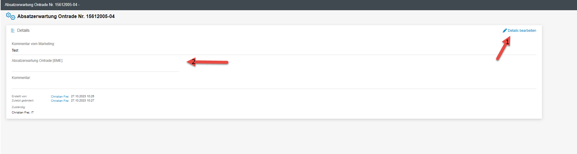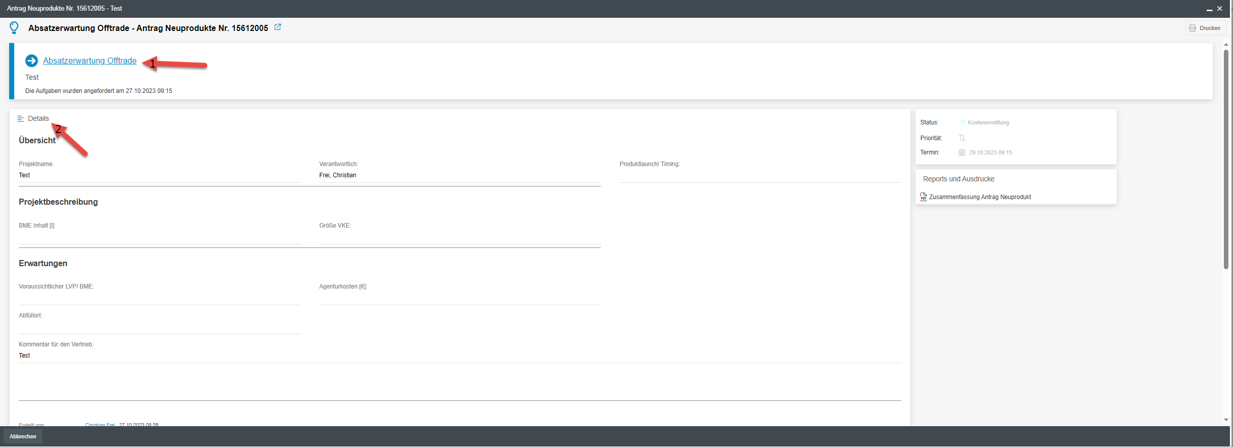 2 Details. Übersicht über bereits getätigte Eingaben.