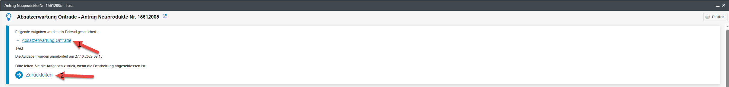 Nach dem Speichern werden bei einigen Vorgängen die Aufgaben automatisch weitergeleitet.