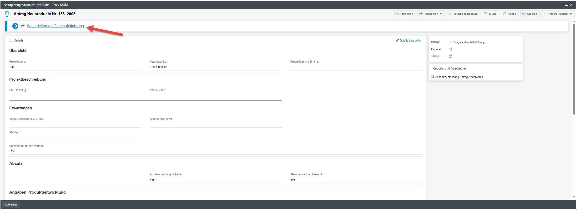 Einige Aufgaben werden nicht automatisch weitergeleitet. Automatische Weiterleitungen werden durch einen Hinweis nach dem Speichern angezeigt. Fehlt der Hinweis ist die Weiterleitung durchzuführen.