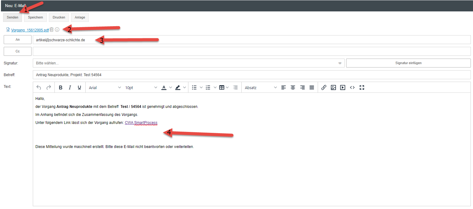 4. Nachricht. Der Text ist nach Bedarf zu ändern oder zu ergänzen.