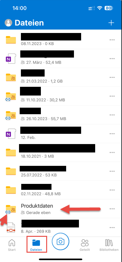 Im Folgenden wird am Beispiel der Produktdaten gezeigt, wie man die Ordner in OneDrive hinzufügt.