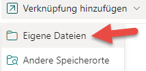 Wählt man "Eigene Dateien", wird die Verknüpfung der Datei im Hauptverzeichnis des eigenen OneDrive hinzugefügt.