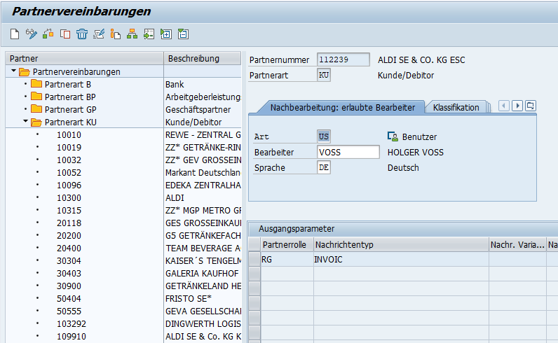 1. Anlage des Regulierers in der EDI-Partnervereinbarung: Aufruf mit der Transaktion WE20, Partnerart KU auswählen und einen bestehenden Datensatz kopieren mit der neuen Regulierer-Nummer.