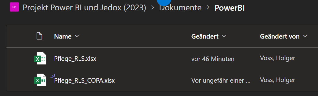 Hier ist der Link, um die Daten zu bearbeiten: https://schwarze.sharepoint.com/sites/ProjektPowerBIundJedox2023/Freigegebene%20Dokumente/Forms/AllItems.aspx?id=%2Fsites%2FProjektPowerBIundJedox2023%2FFreigegebene%20Dokumente%2FPowerBI&viewid=fbc67fc2%2D3523%2D445a%2D94cf%2Da5392641d5ca