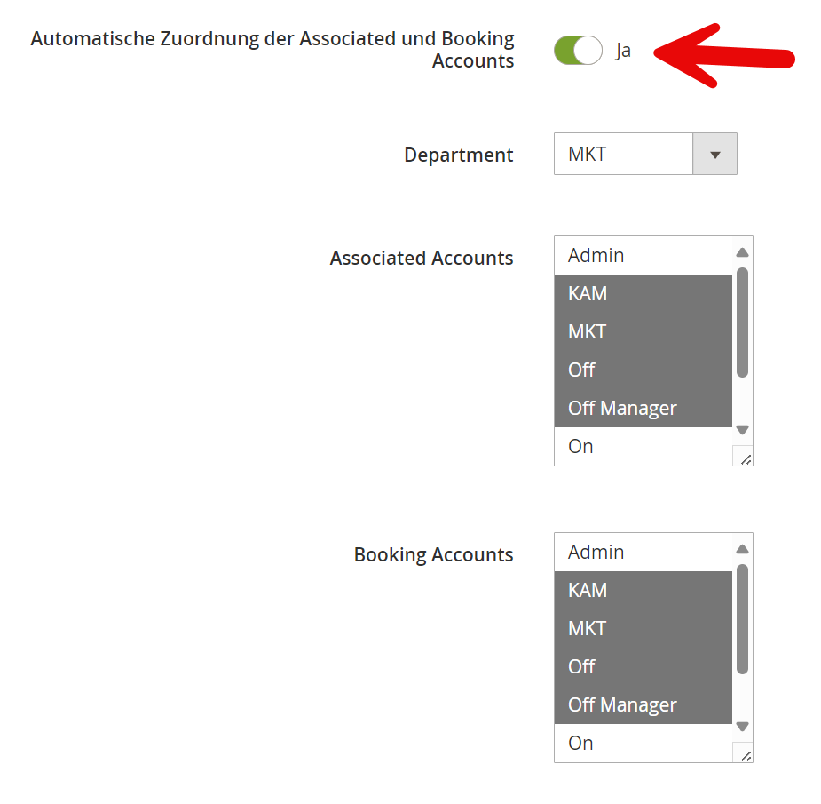 Bei den Usern, die Kontingente von einer Person zu einer anderen transferieren dürfen, werden die neuen User dann automatisch anhand des Kennzeichens hinzugefügt.