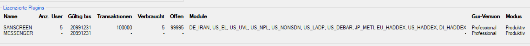 Lizenz-Information: Hier kann man Informationen zur aktuellen Lizenz einsehen. Neben den erworbenen Modulen kann man hier auch die verbleibenden Transaktionen überprüfen.