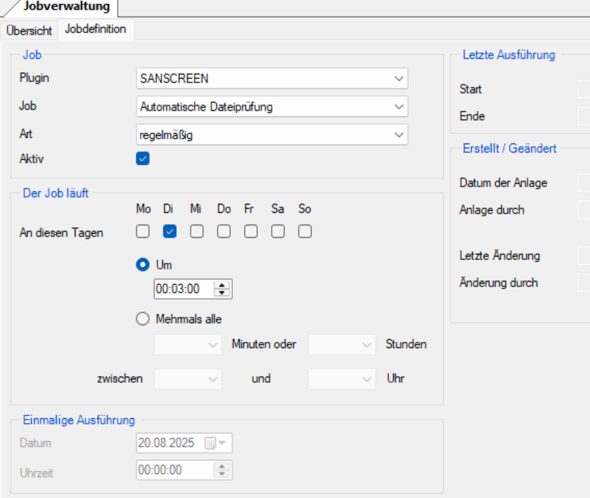 Beispiel: Eine Dateiprüfung wird für jeden Dienstag für 03:00 Uhr geplant.