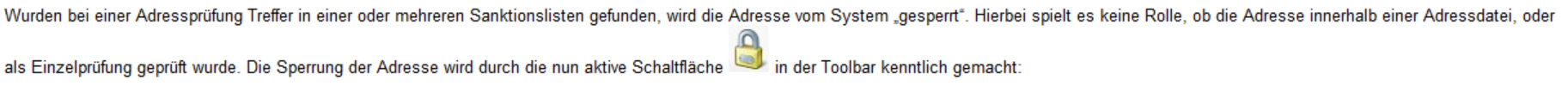 - alle relevanten Sanktionslisten enthalten (neben Standard-Listen auch zusätzlich HADDEX-Liste (alle EU- bzw. UN-Finanzsanktionen))
