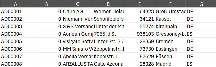 Wichtig: Keine Semikolon (;) oder doppelte Anführungszeichen (") in den eingetragenen Daten verwenden! Ansonsten kommt es zu Fehlern bei der Überprüfung der Datei.
