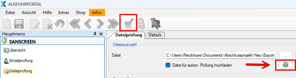 Alternativ kann man die Datei auch für die automatische Prüfung hochladen. So wird diese z.B. in regelmäßigen Abständen oder zu einem festgelegten Zeitpunkt geprüft.