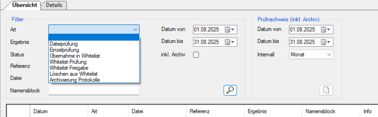 Es gibt die Möglichkeit, sämtliche überprüfte Ergebnisse in einer protokollierten Liste anzeigen zu lassen.