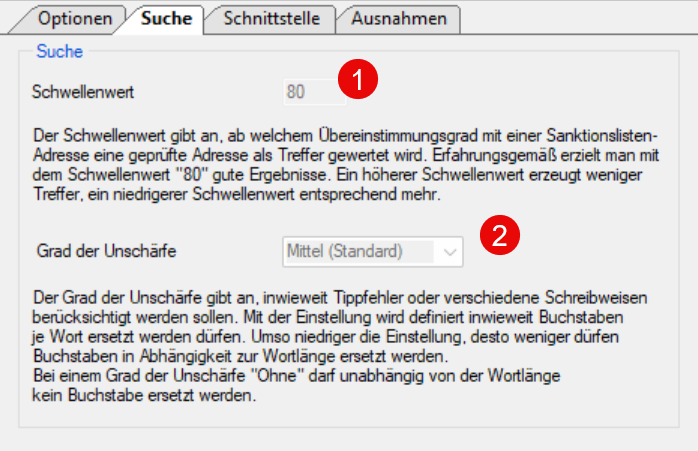 Von einem Schwellenwert höher als 85 wird jedoch abgeraten. Hier könnten korrekte Treffer übersehen werden, da Ähnlichkeiten hier potenziell ignoriert werden.