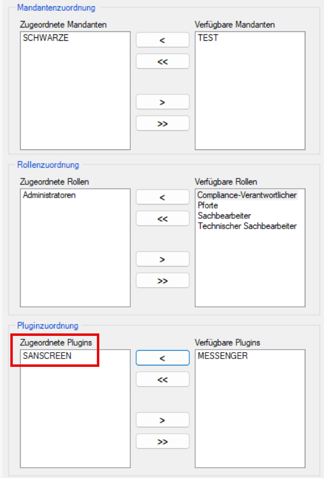 Es können auch (z.B. im Fall des Administrators) auch nur einzelne Plugins zugeordnet werden, um die vergebenen Lizenzen zu reduzieren: